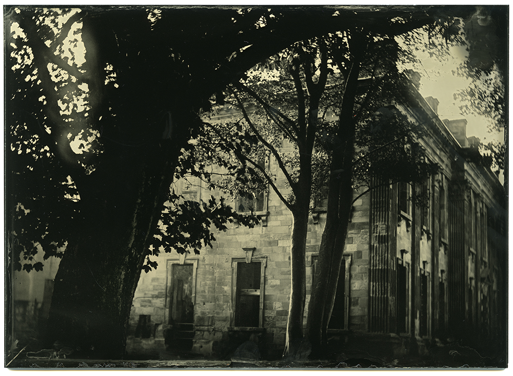 I arrived early on an October morning, just as a heavy fog was clearing. The light was beautiful, filtering through the trees in the grounds of the hall. I set up my portable darkroom and camera, and aside from a few dog-walkers I had the place to myself. Bliss.